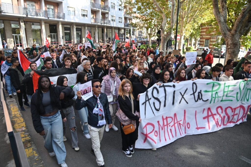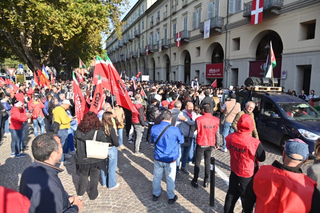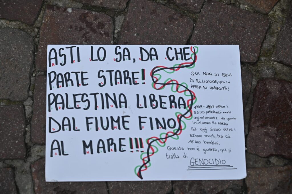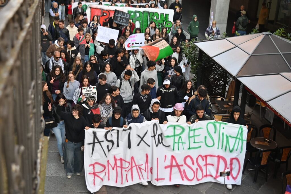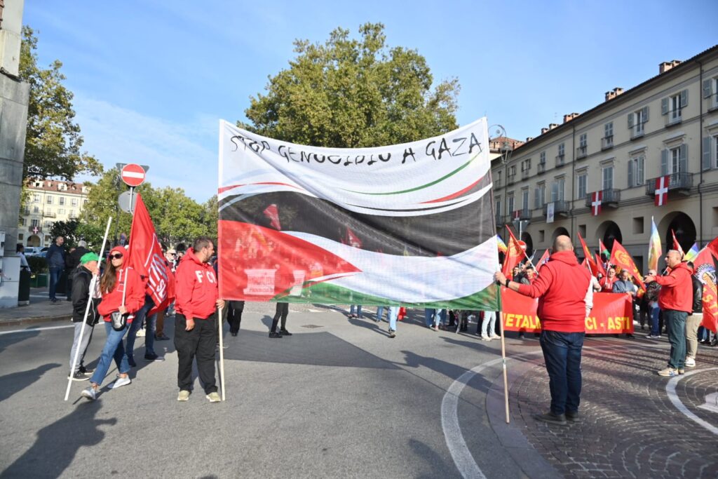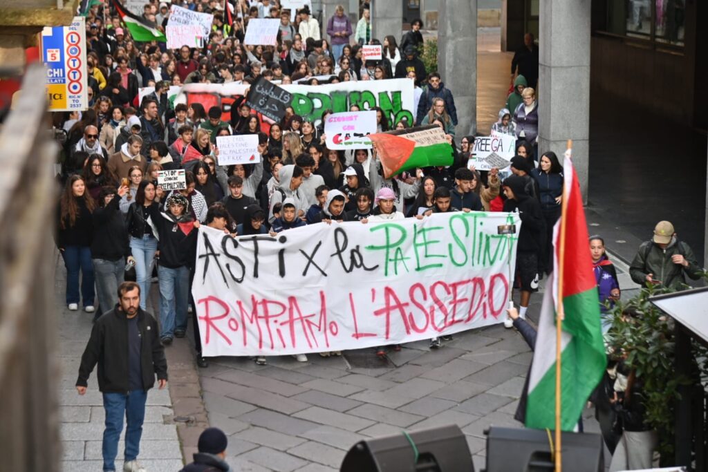Tanti astigiani, soprattutto studenti questa mattina sono scesi in piazza per lo sciopero generale indetto da Cgil e sindacati di base per dire basta al genocidio in corso in Palestina. “Free Palestine”, “oggi non è un giorno di ferie ma di lotta”, “Stop al genocidio”, sono solo alcuni degli slogan che risuonano al corteo partito da piazza Alfieri alle 10 e che sta percorrendo le strade cittadine (corso Einaudi, corso Matteotti, rotonda della Saclà, via Grassi, piazza San Giuseppe, via XX settembre, via Brofferio, piazzetta San Paolo e piazza Statuto) e si concluderà in piazza San Secondo .