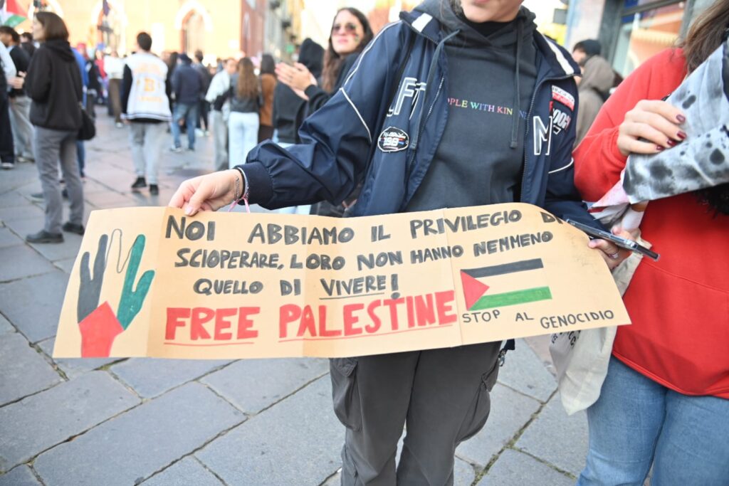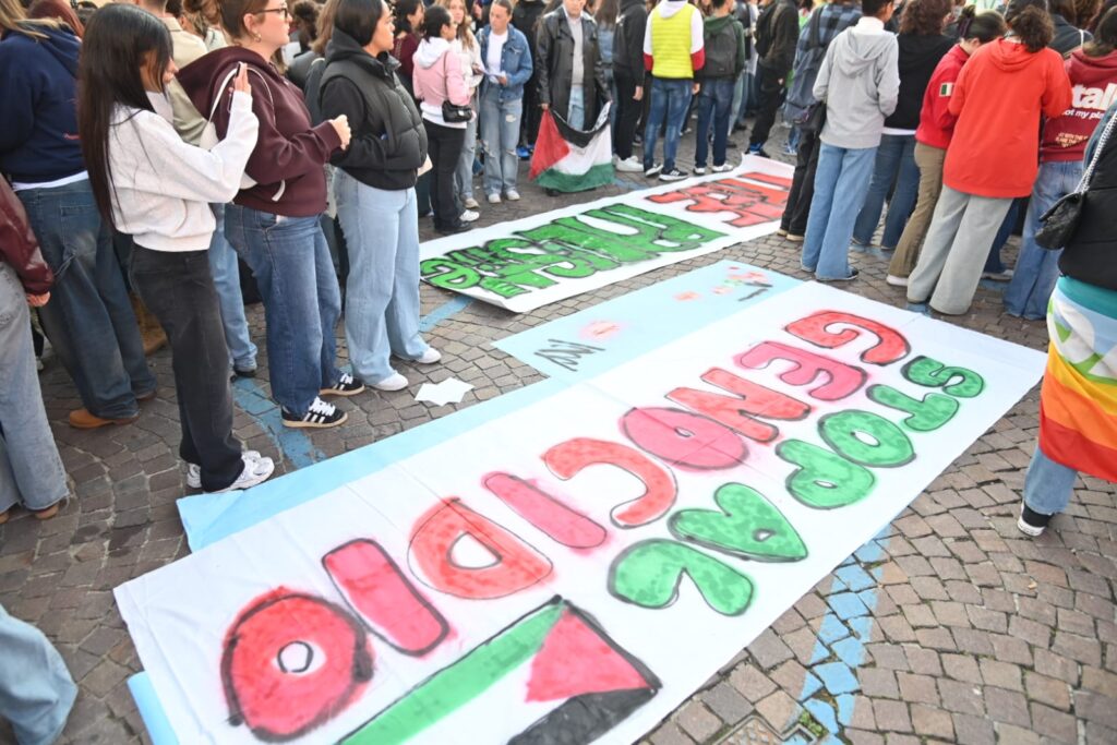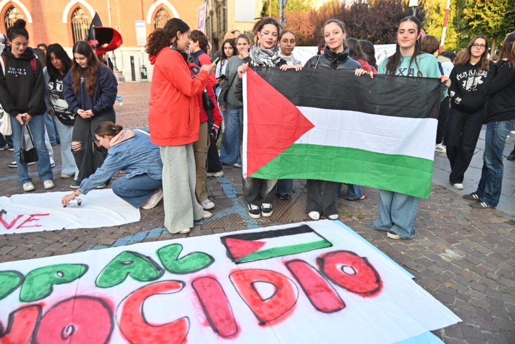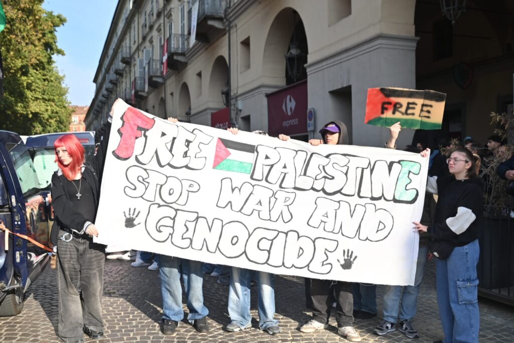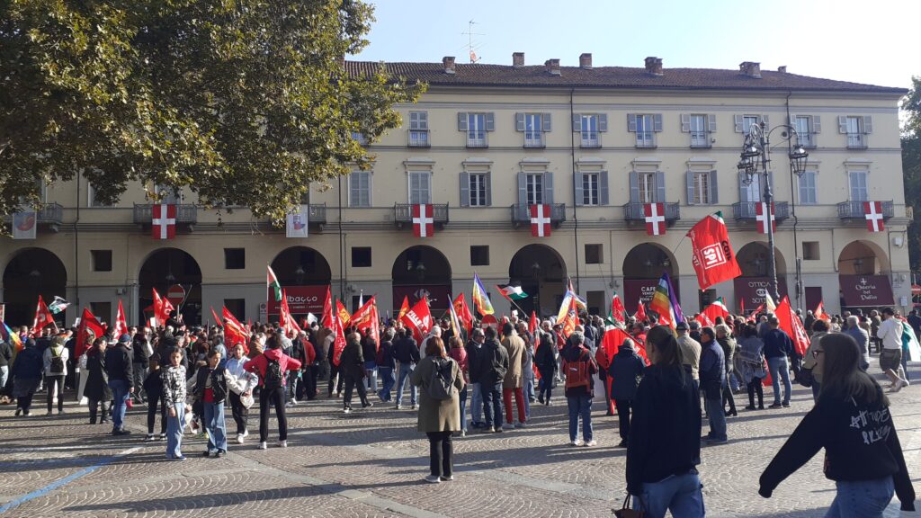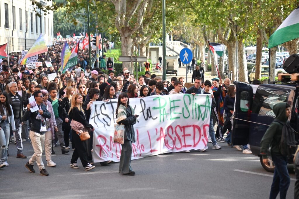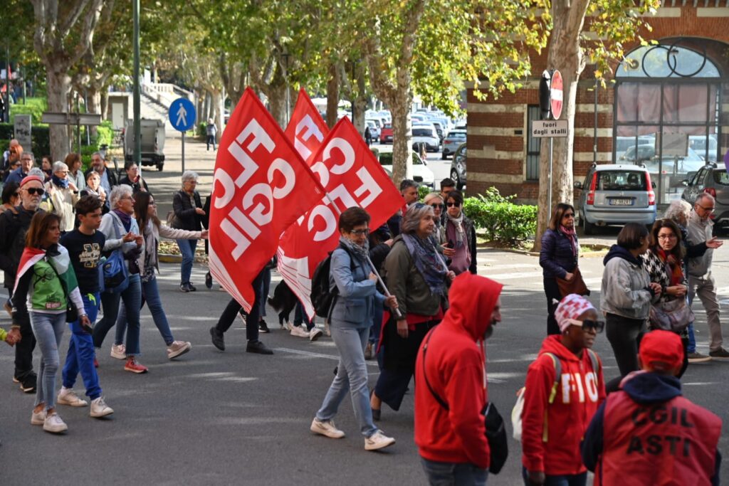 Tanti astigiani, soprattutto studenti questa mattina sono scesi in piazza per lo sciopero generale indetto da Cgil e sindacati di base per dire basta al genocidio in corso in Palestina. “Free Palestine”, “oggi non è un giorno di ferie ma di lotta”, “Stop al genocidio”, sono solo alcuni degli slogan che risuonano al corteo partito da piazza Alfieri alle 10 e che sta percorrendo le strade cittadine (corso Einaudi, corso Matteotti, rotonda della Saclà, via Grassi, piazza San Giuseppe, via XX settembre, via Brofferio, piazzetta San Paolo e piazza Statuto) e si concluderà in piazza San Secondo .