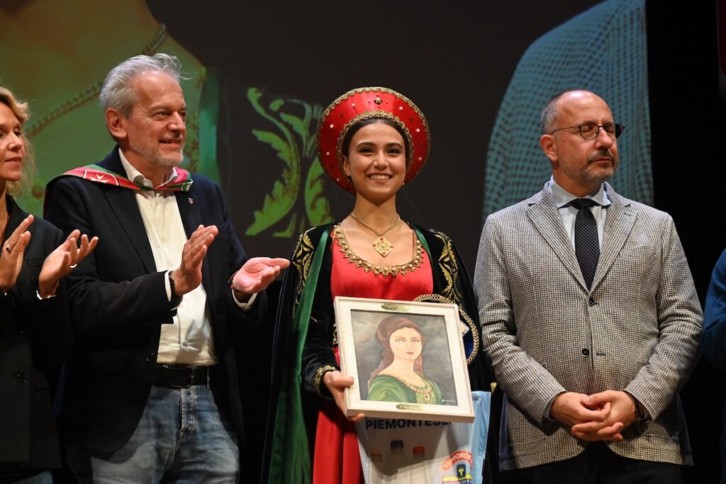 A vincere l’affascinante damigella del Borgo San Pietro: Elisa Secchi, 17 anni, grazie alla sua raffinata bellezza e al suo fascino solare ha ottenuto ben 204 voti. Voti dati da una giuria presieduta dal capitano del Palio, Gianbattista Filippone, e di cui facevano parte i magistrati Marco Bonino e Davide Argenta, il vicesindaco Stefania Morra, gli assessori Riccardo Origlia e Loretta Bologna, la direttrice del Museo del Palio Barbara Molina, gli ex capitani del Palio Mario Vespa, Enzo Clerico e Michele Gandolfo, il critico d’arte Francesco Antonio Lepore, il presidente della Commissione Tecnica Roberto Sabatini, il presidente della Commissione Veterinaria Fulvio Brusa, il presidente del Panathlon Mauro Gandolfo, la presidente del Soroptimist Maria Gabriella Saracco, la consigliere regionale del Coni Lavinia Saracco, il rappresentante dell’Asta. Luigi Garioni, il rappresentante di Format Carlo Bosticco e, in rappresentanza dei mass- media astigiani Massimo Elia, Gabriele Strozza, Danilo Poggio, Giulia Frontino, Edoardo Mussa e la sottoscritta.